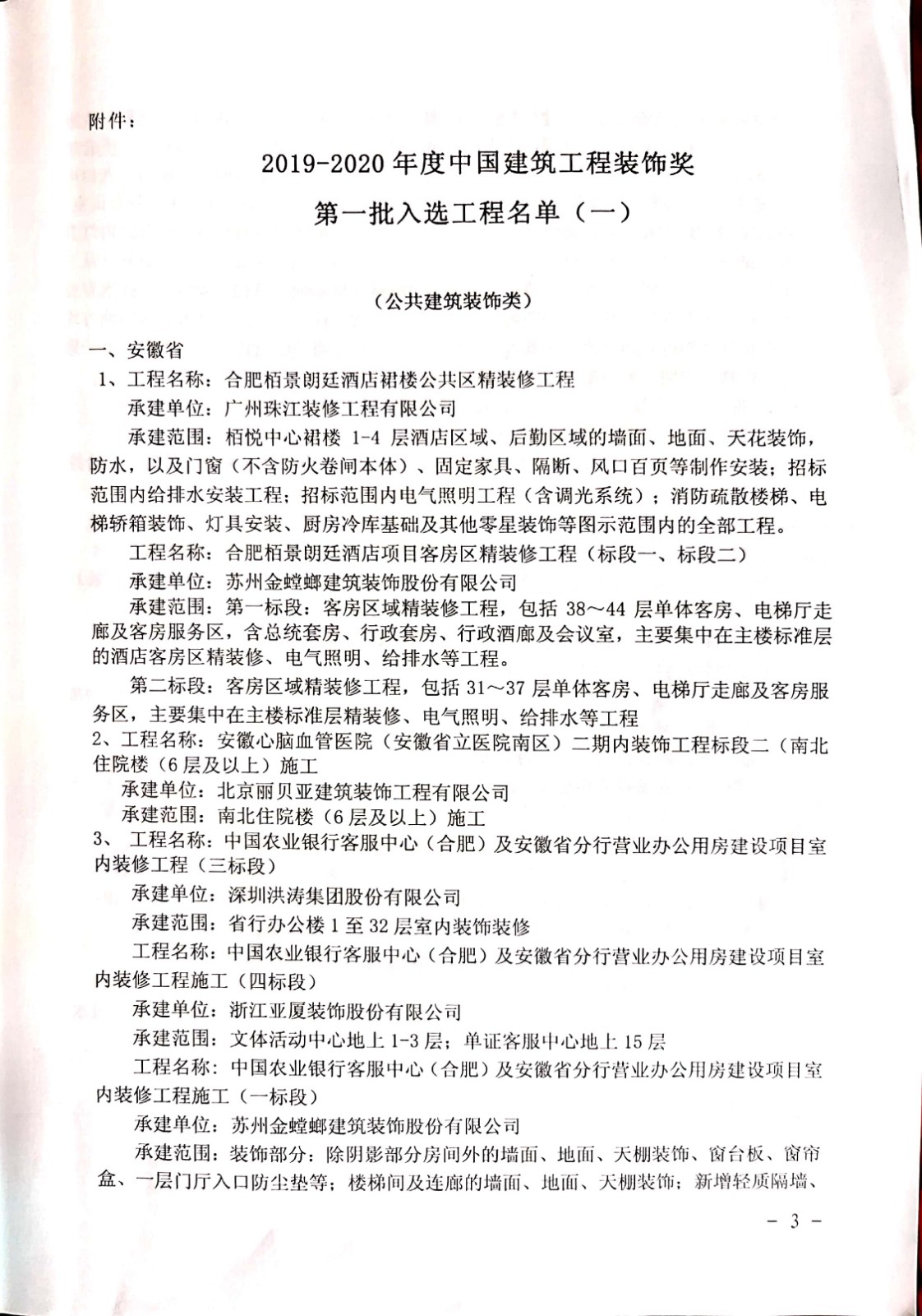 裝飾獎(jiǎng)--中國郵政儲蓄銀行股份有限公司湖南省分行營運(yùn)用房裝修改造工程、湘西州中級人民法院審判庭、地下車庫項(xiàng)目(精裝修及配套工程)