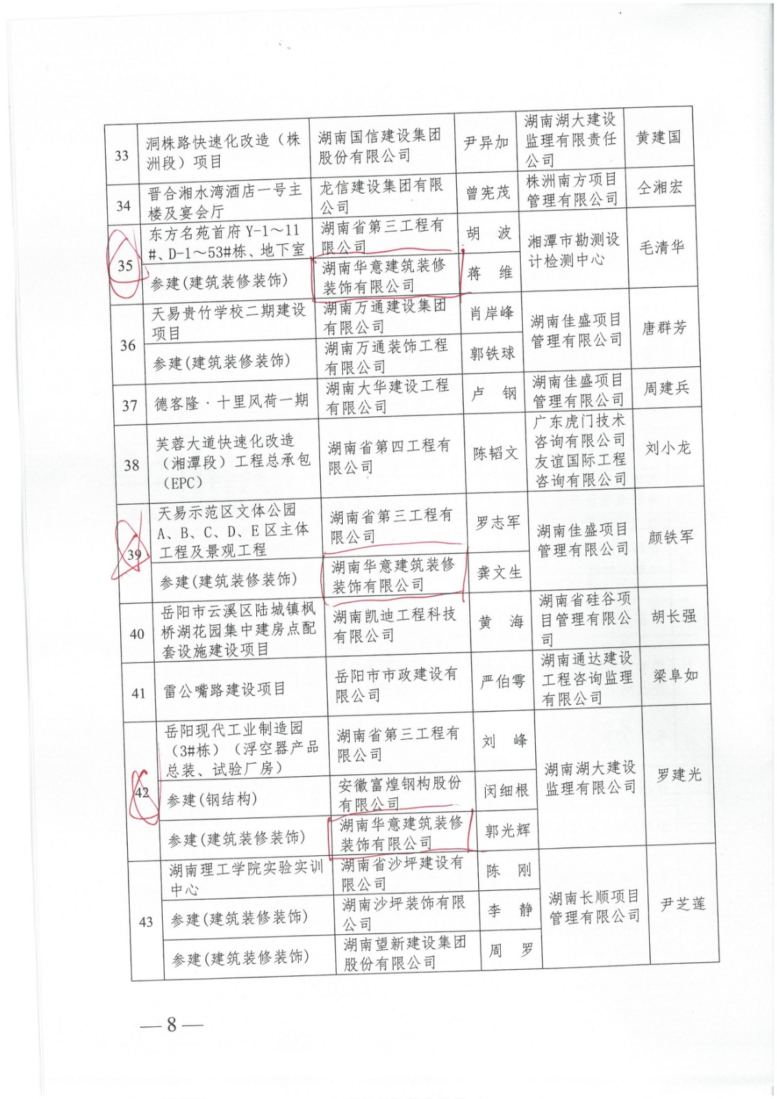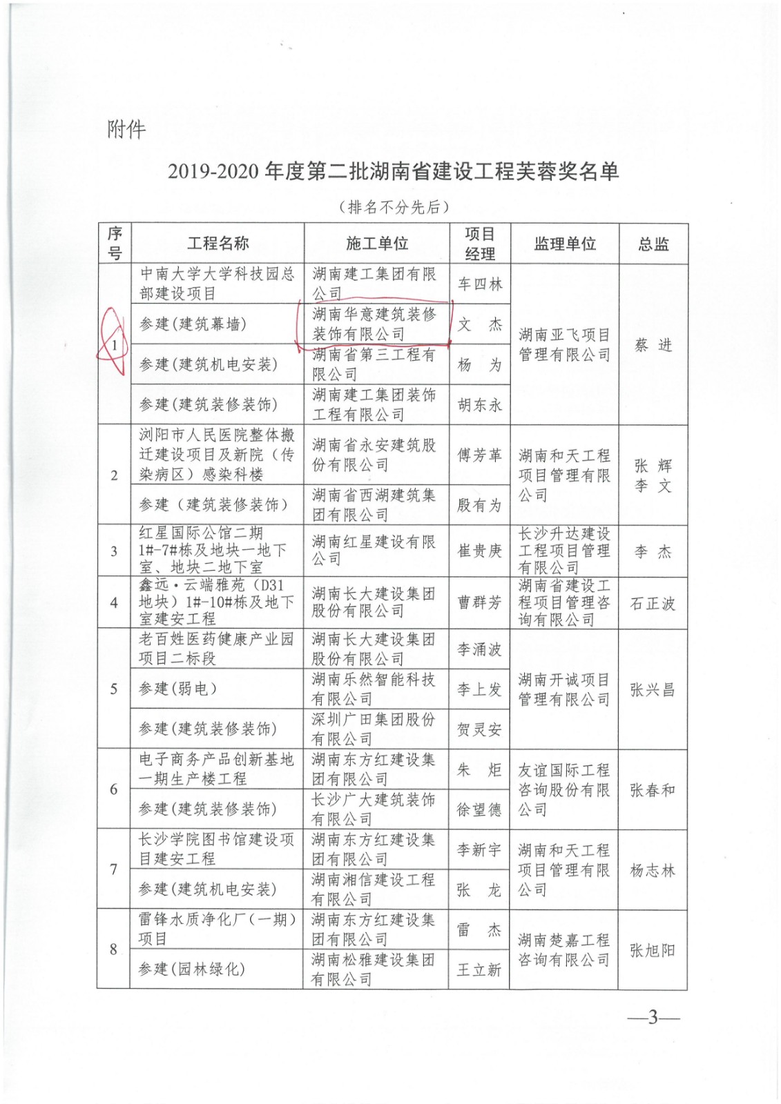 芙蓉獎---中南大學(xué)大學(xué)科技園總部建設(shè)項目、東方名苑首府Y-1~11#、D-1~53#棟、地下室、天易示范區(qū)文體公園ABCDE區(qū)主體工程及景觀工程、岳陽現(xiàn)代工業(yè)制造園(3#棟)(浮空器產(chǎn)品總裝、試驗廠房)